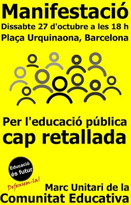 El MUCE (Marc Unitari de la Comunitat Educativa) convoca a tota la comunitat educativa a participar en la manifestació a favor de l’escola pública el proper dissabte 27 d’octubre.