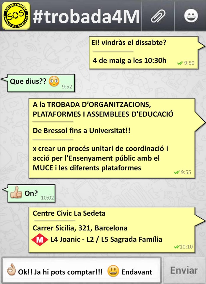TROBADA D’EDUCACIÓ (ASSEMBLEES, PLATAFORMES, ORGANITZACIONS, FAMÍLIES)
