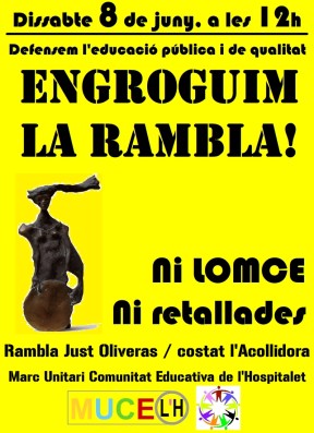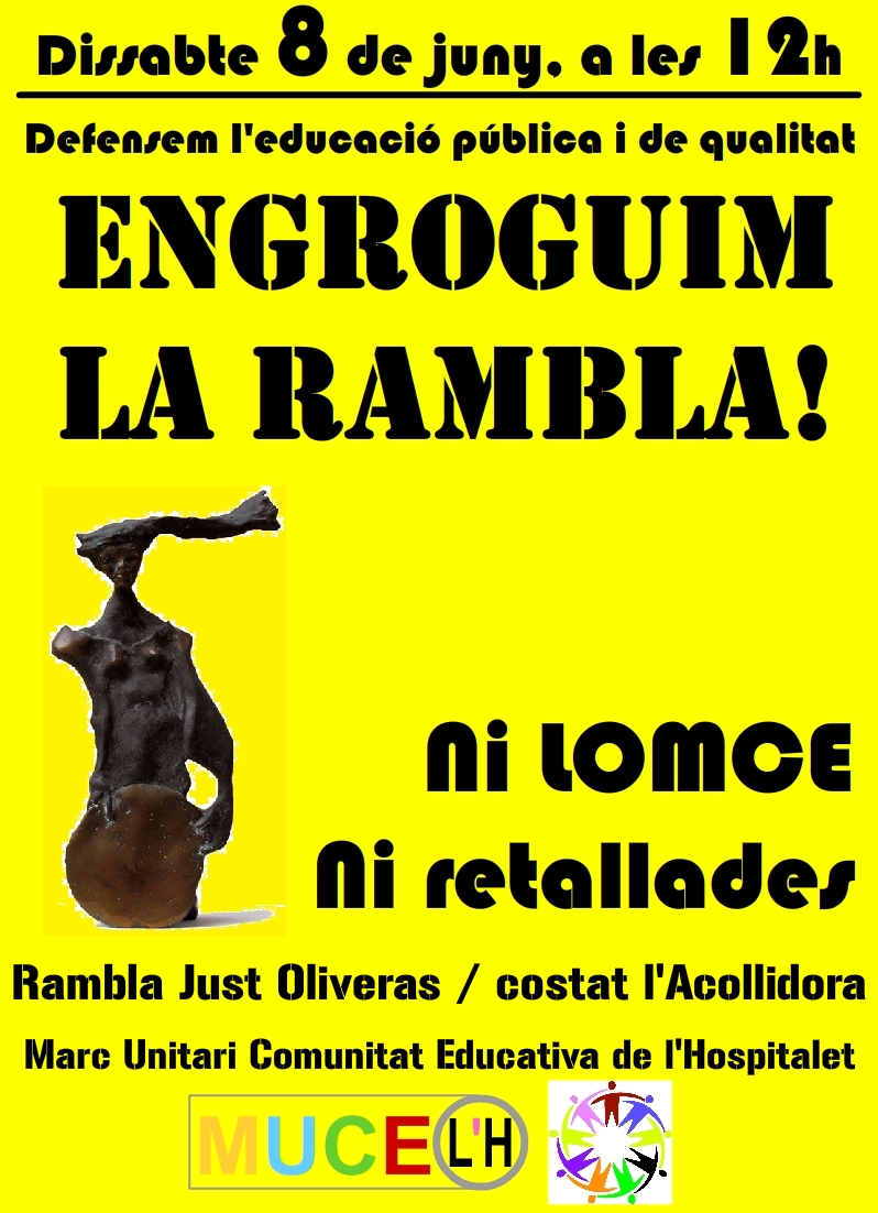 Des del MUCE L’H ens proposen una nova acció reivindicativa abans de finalitzar el curs: penjar cintes grogues de tots els fanals de la Rambla Just Oliveres, i envoltar l’Acollidora de consignes grogues en contra de les retallades en educació.