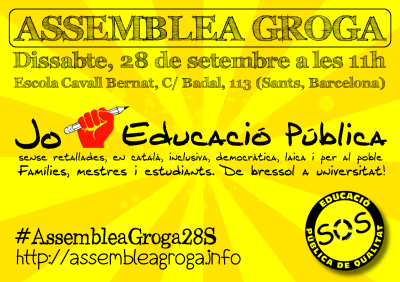 l’Assemblea Groga convoca a tota la comunitat educativa a participar activament a l’assemblea que tindrà lloc el proper dissabte 30 de setembre, des de les 11 a les 15h a l’escola Cavall Bernat.
