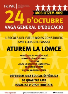 El proper dia 24 d’octubre donem suport a la vaga en educació, en contra de la LOMCE i de les retallades, i participem a la manifestació!!