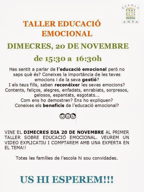 1er TALLER EDUCACIÓ EMOCIONAL: 20 NOVEMBRE