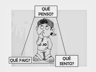 Per tal d’ajudar l’infant a reconèixer que està enfadat, podem fer l’exercici de “què sento al cos?” en el que s’anomena el termòmetre de la ràbia i revisar després el triangle: què penso? què sento? I què faig? a més a més d’avaluar la situació (què passa?).