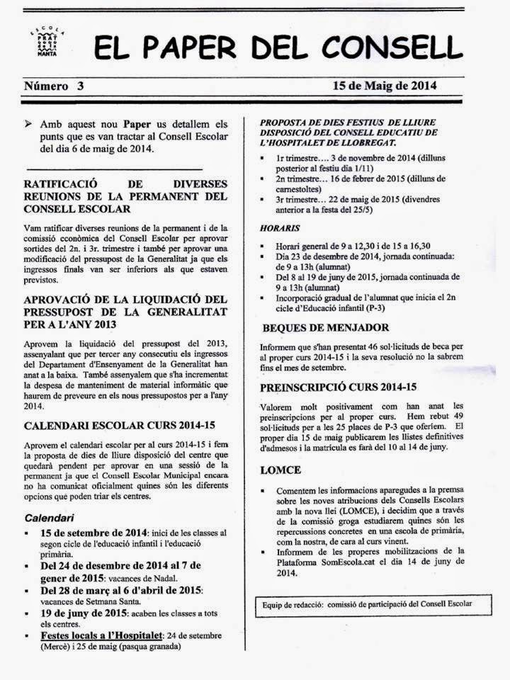 CONSELL ESCOLAR MAIG 2014 19/05/2014 per AFA Prat de la Manta, posted in Escola, Sin categoría Aquí teniu el “paper del consell” corresponent a la reunió del consell escolar de maig: Descobriu-ne més des de Subscribe to get the latest posts sent to your email. Escriviu el vostre correu electrònic… Subscriu-me Comparteix això: Share on WhatsApp (S'obre en una nova finestra) WhatsApp Comparteix al Facebook (S'obre en una nova finestra) Facebook Share on X (S'obre en una nova finestra) X Email a link to a friend (S'obre en una nova finestra) Correu electrònic Imprimeix (S'obre en una nova finestra) Imprimeix M'agrada S'està carregant... Relacionado