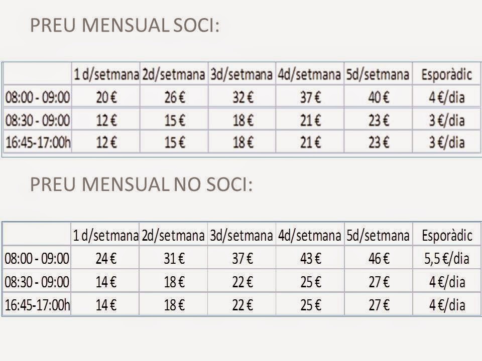 IMPORT: SOCI 20.-€/mes – NO SOCI 27.-€/mes