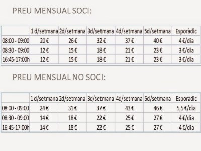 S’ofereix l’activitat de setembre a juliol, i pagant una quota especial de 10 euros a l’agost es manté la matrícula pel curs següent.
