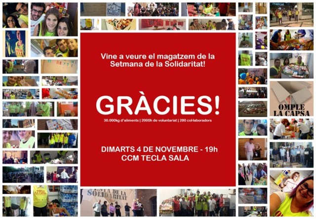 Gràcies per l’extraordinària resposta solidària a la iniciativa “OMPLE LA CAPSA” en el marc de LA SETMANA DE LA SOLIDARITAT DE L’H que s’ha celebrat del 13 al 19 d’Octubre a la nostra Ciutat.