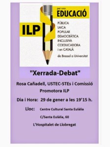 El proper dia 29 de gener tindrà lloc una xerrada informativa al Centre Cultural Santa Eulàlia sobre la Iniciativa Legislativa Popular d’Educació.