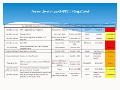 L’encarregada de fer la xerrada va ser la Gemma Saucedo, mare del Joel i la Carla, membre de la comissió de formació-participació de l’AMPA i impulsora, juntament amb la Lidia Álvaro, del projecte. Va fer una presentació molt clara i dinàmica, explicant com i amb quins objectius s’havia desenvolupat el projecte i quines són les línies de futur pels propers trimestres. Va despertar molt d’interés i ja hi ha unes quantes escoles més engrescades amb el tema!!