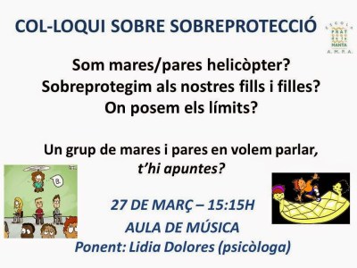 RECORDATORI XERRADA-COL.LOQUI SOBRE SOBREPROTECCIÓ 25/03/2015 per AFA Prat de la Manta, posted in Activitats sobre Educació, Educació Emocional, Sin categoría T’esperem divendres a les 15:15h a l’aula de música!Serà molt interessant i enriquidor, no t’ho perdis!! Descobriu-ne més des de Subscribe to get the latest posts sent to your email. Escriviu el vostre correu electrònic… Subscriu-me Comparteix això: Share on WhatsApp (S'obre en una nova finestra) WhatsApp Comparteix al Facebook (S'obre en una nova finestra) Facebook Share on X (S'obre en una nova finestra) X Email a link to a friend (S'obre en una nova finestra) Correu electrònic Imprimeix (S'obre en una nova finestra) Imprimeix M'agrada S'està carregant... Relacionado
