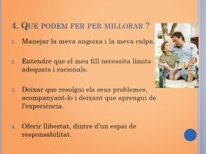 I ens va donar pautes i eines per poder millorar: Entendre que els nostres fills necessiten límits adequats i racionals, deixar que resolguin els seus problemes, acompanyant-los i deixant que aprenguin de l’experiència.