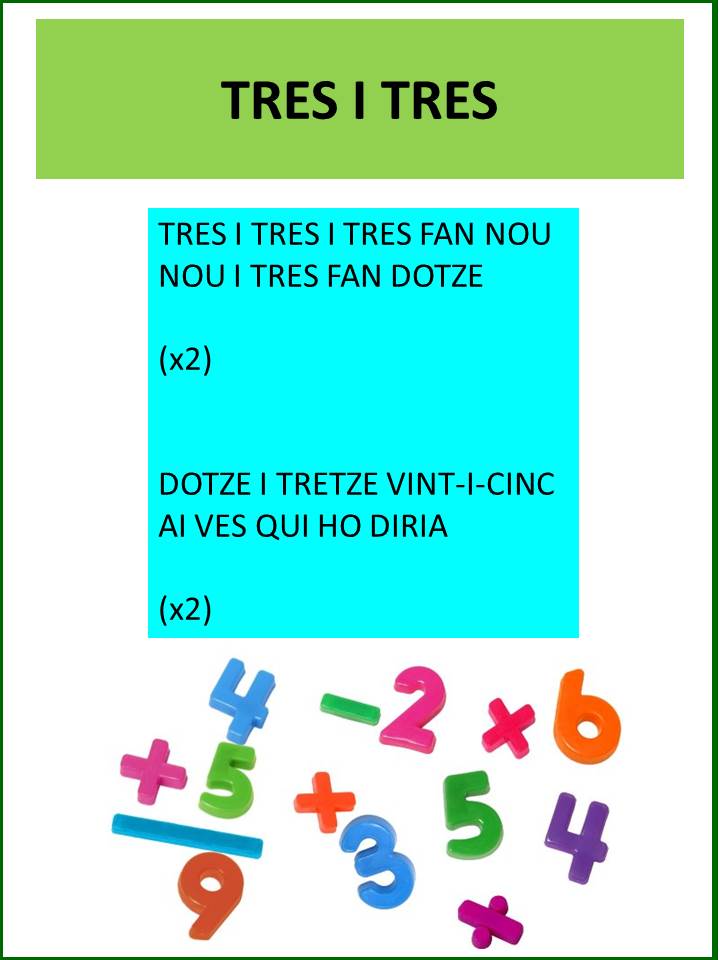 Per a tots i totes les cantaires, a mode de recordatori, adjuntem les cançons que hem treballat fins ara amb la seva estructura final. I si t’agrada cantar però no pots participar els dimarts, no et tallis, agafa aire i un, dos, tres…