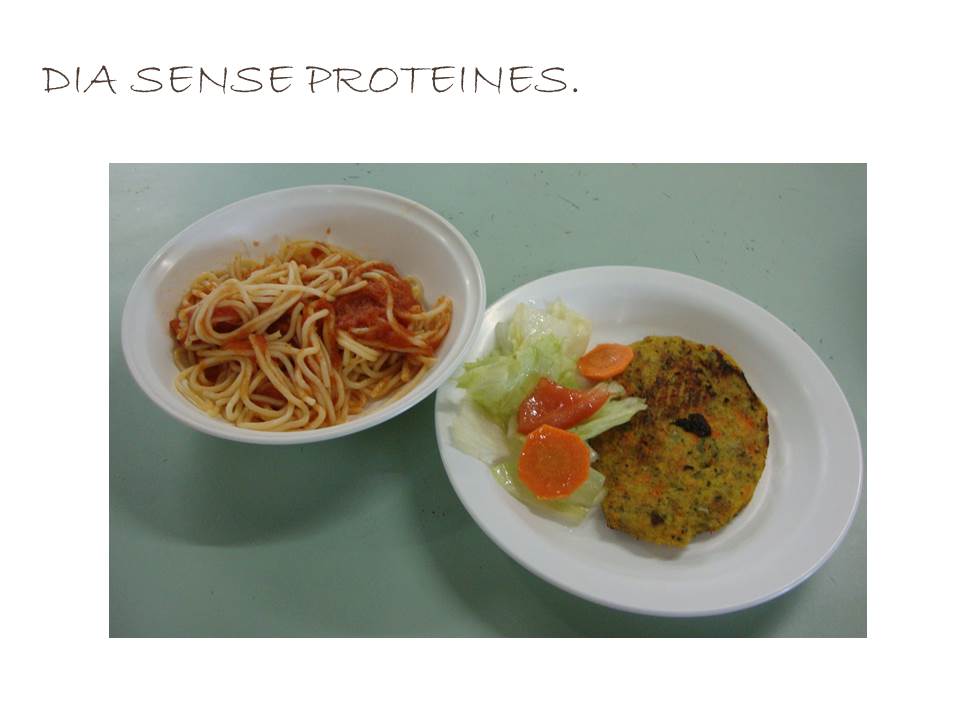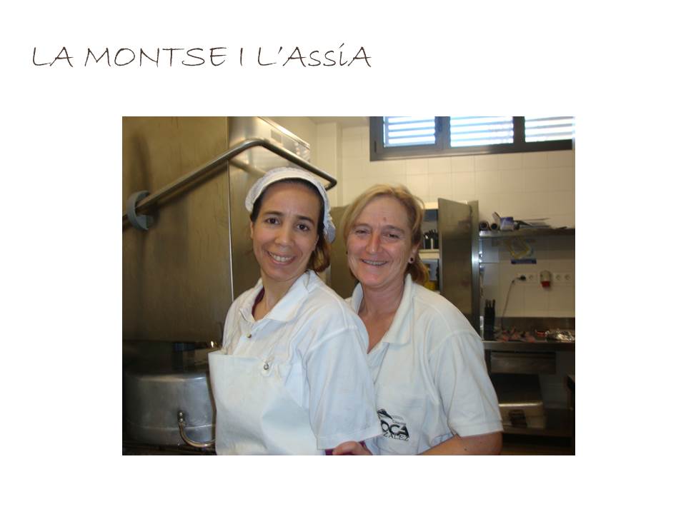 En primer lloc ens van explicar com es creen els menús. Des de la empresa “Roca González S.L.” s’elaboren els diferents menús per al mes en qüestió (recordem que a part del menú “normal” hi ha un “sense ou”, “sense porc”, “sense gluten” i “vegetarià”) recolzats per una nutricionista. Un cop elaborat el menú es passa al centre per adaptar-ho a les preferències i necessitats de l’escola i es aquí on la Carme i la Montse, que són qui coneixen més bé els nens, poden retocar una mica el seu contingut. El menú torna a la empresa per a que la nutricionista li doni el vistiplau i, finalment, es torna al centre com a menú definitiu. Penseu que a part d’aquests cinc menús principals i en el cas que hi hagi un alumne que sigui al·lèrgic a dos o més productes (per exemple celíac i intolerant a l’ou) es faria un menú específic per a ell. Ens recorden que les famílies que tenen fills/es en aquesta situació es poden posar en contacte amb la dietista per a poder organitzar sopars si així ho desitgen.