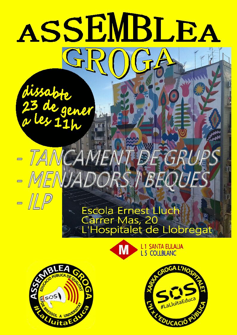 Dissabte 23 tindrà lloc la reunió de l’Assemblea Groga a l’escola Ernest Lluch (Collblanc).
