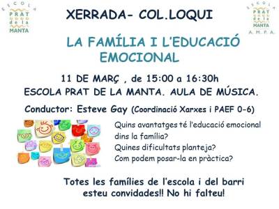 Desprès de la bona acollida que va tenir la sessió sobre parentalitat positiva, l’Esteve ens ajudarà a reflexionar sobre els avantatges de l’educació emocional dins la família i les dificultats per aplicar-la. Un dels objectius serà trobar mecanismes per posar-ho en pràctica. Un altre objectiu (igualment important) és continuar fent caliu entre les famílies de l’escola i del barri i compartir experiències.
