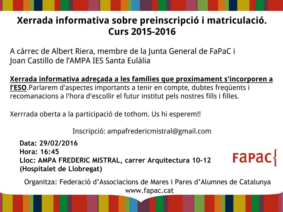 XERRADA INFORMATIVA SOBRE LA INCORPORACIÓ A L’ESO