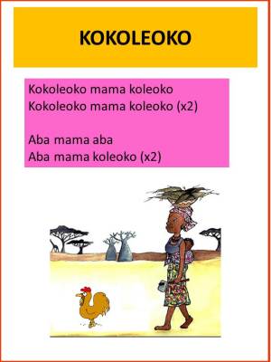 Aquesta cançó africana parla de com el gall desperta al poblat al sortir el sol, i és hora de que la mare es llevi. El ball que l’acompanya és molt divertit i els nens i les nenes són els que millor el dominen!!