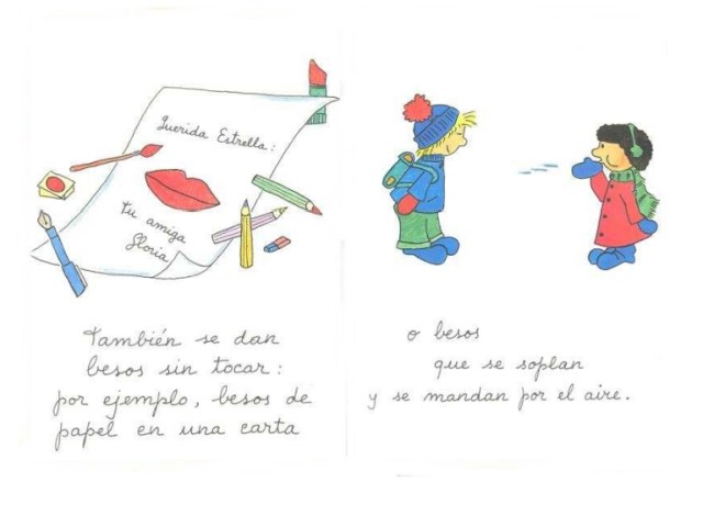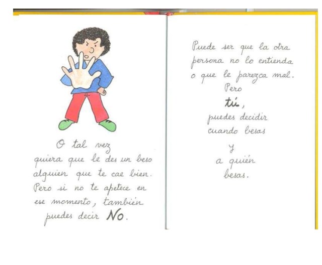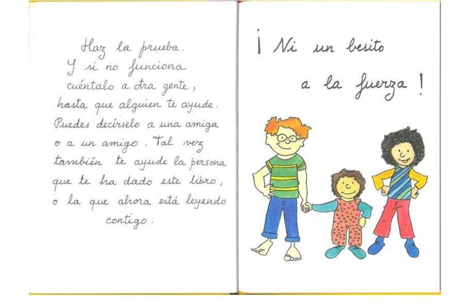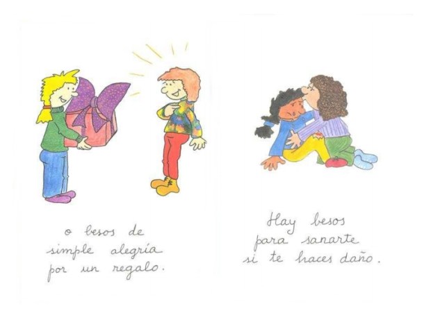 Els Drets dels infants es van signar a nivell mundial amb excepcions el 1989 i Espanya ho va ratificar el 1991. Fa molt poc temps, encara no els hem incorporat i no els coneixem. Farem especial incidència en el “Dret a la intimitat i al propi cos”. És molt important respectar aquest dret, igual que la resta. I això ens obliga a parlar dels petons… Els petons tenen a veure amb moltes coses, però NO amb l’educació, la rutina, l’obligació o el xantatge emocional o fins i tot econòmic. El petó és un regal: el fem quan volem i ens ve de gust. Si no volem, el guardem per a quan ens vingui de gust. Molt de compte amb les frases de xantatge: “si no em fas un petó ja no t’estimaré”, “si em fas un petó et donaré uns euros o et faré un regal”. El conte “Ni un besito a la fuerza” publicat al País Basc és una gran eina per tractar aquest tema amb els més petits. Sabem que de vegades és difícil gestionar els diferents agents educatius (pares, familiars, mestres…) però cal prioritzar.