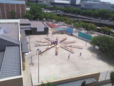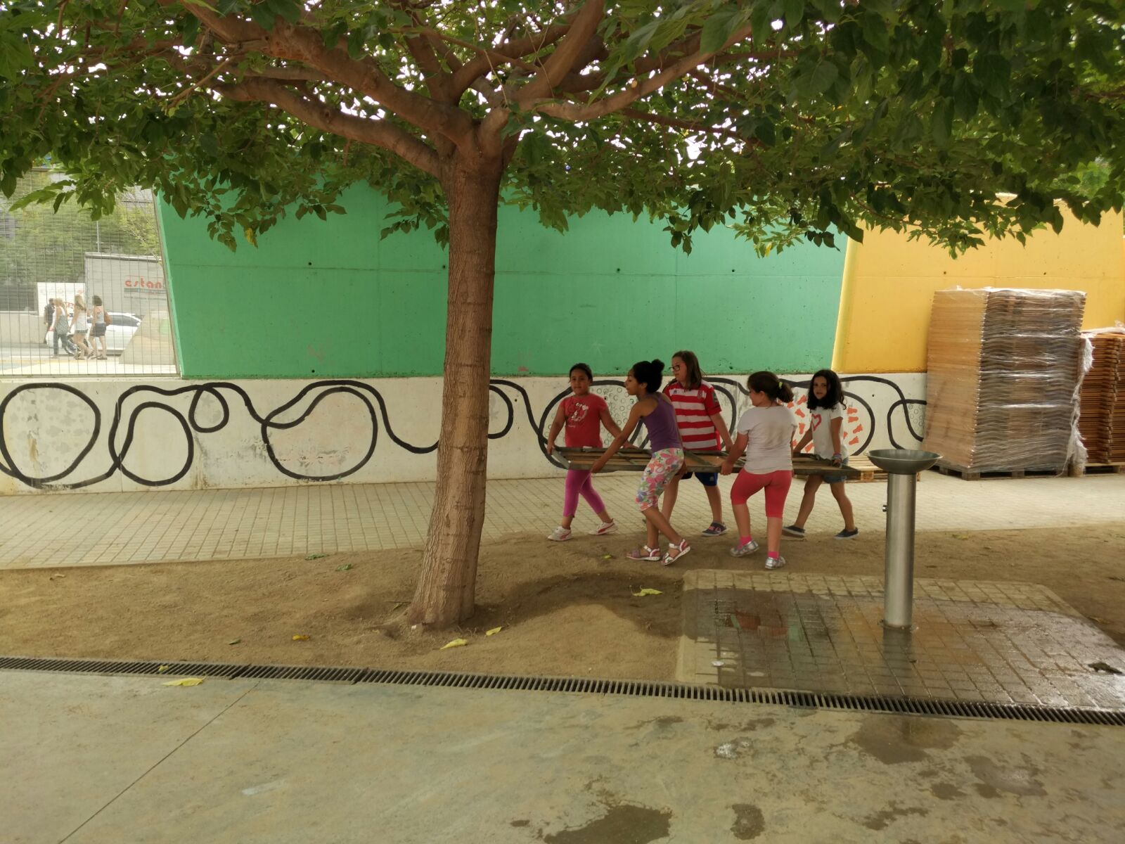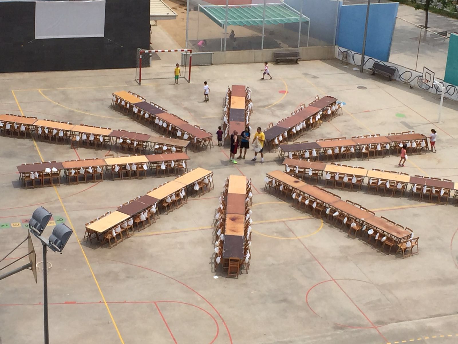 Després de cremar forces amb totes les activitats matinals, tothom va ajudar a muntar les taules i cadires, aquest any amb un disseny peculiar gràcies a Daniel, el pare de Malena de segon que va tenir una idea genial.