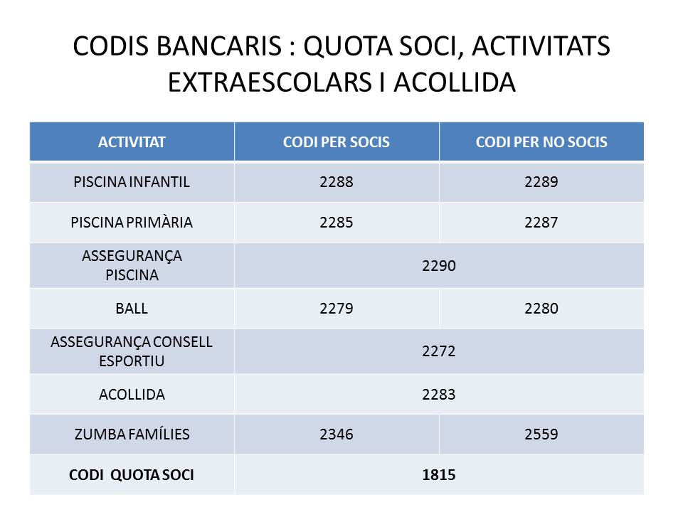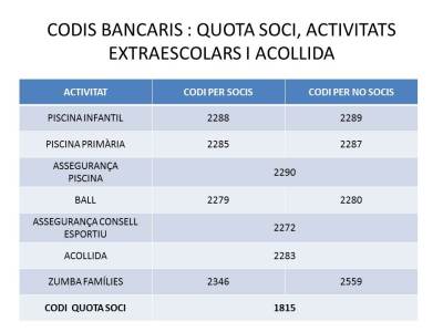 Ja tenim tots els codis per fer el pagament de les extraescolars a través del caixer automàtic del Banc de Sabadell del carrer Igualtat.