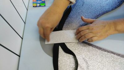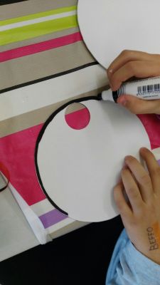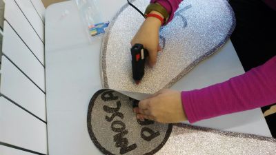 7- A la part d’abaix de cada ansa, col.loquem la gometa i encolem: