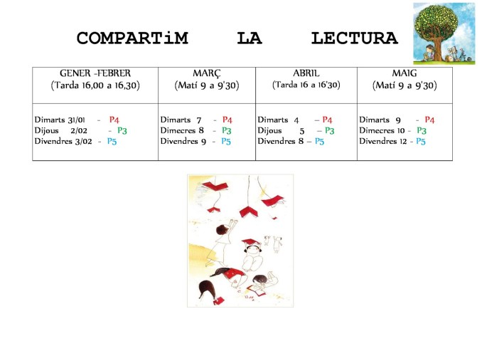 Us recordem les sessions del “Compartim la lectura” (educació infantil) programades pel tercer trimestre: