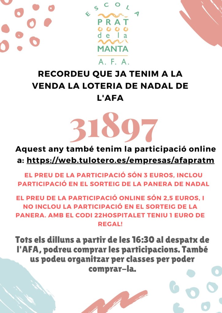 Famílies, aquest any tenim també la loteria ON-LINE. Ja no hi ha excuses de “no porto efectiu després la compro”, amb un Clik la teniu.