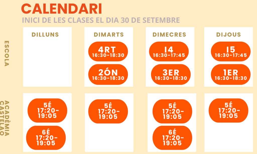 HORARIS A L’ACADÈMIA