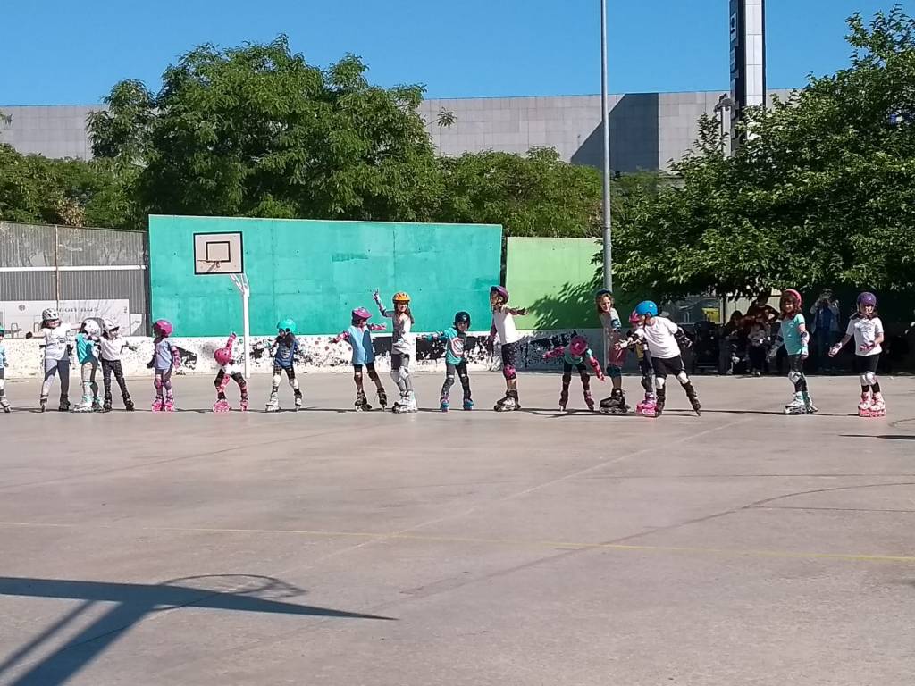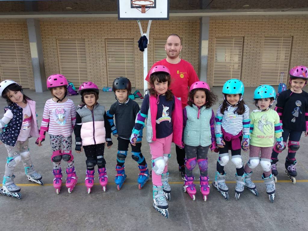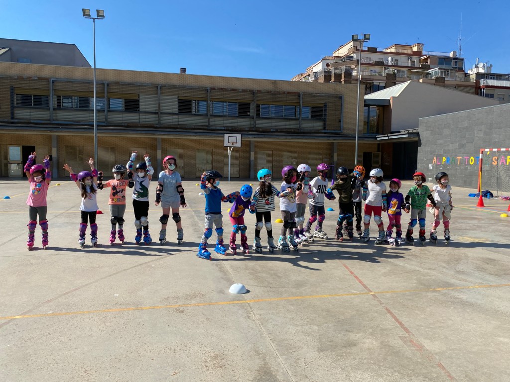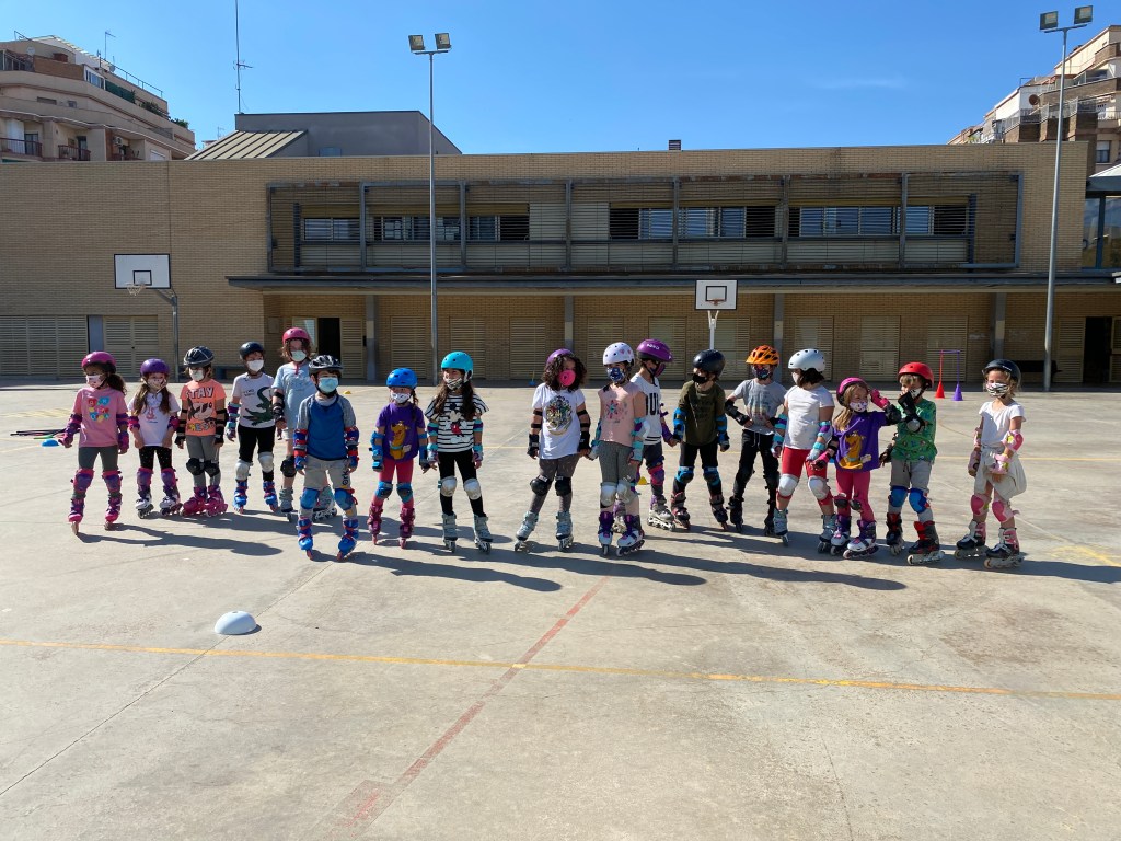 Aquest curs l’activitat de patinatge ha tingut molt d’èxit i les nenes i nens de P4 a 6è ho han passat molt bé i agafat confiança per voltar per la pista sobre rodes. Aquí us deixem algunes fotos de grup i del comiat de final de curs on van fer una demostració a les seves famílies i un berenar saludable per totes i tots.