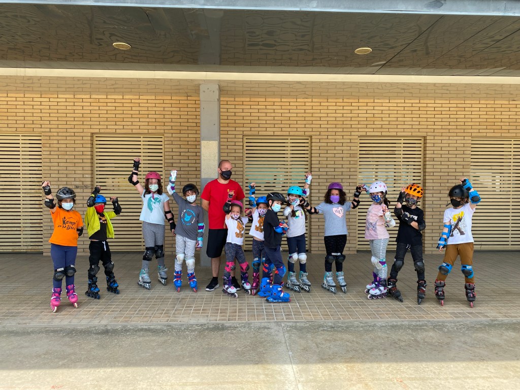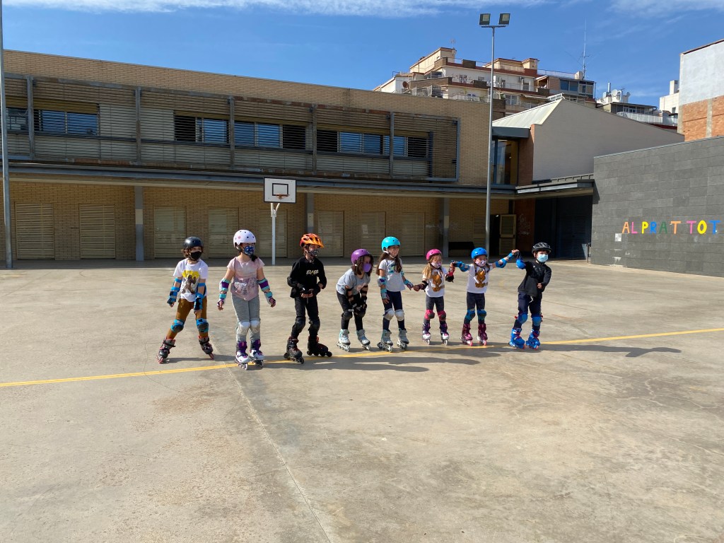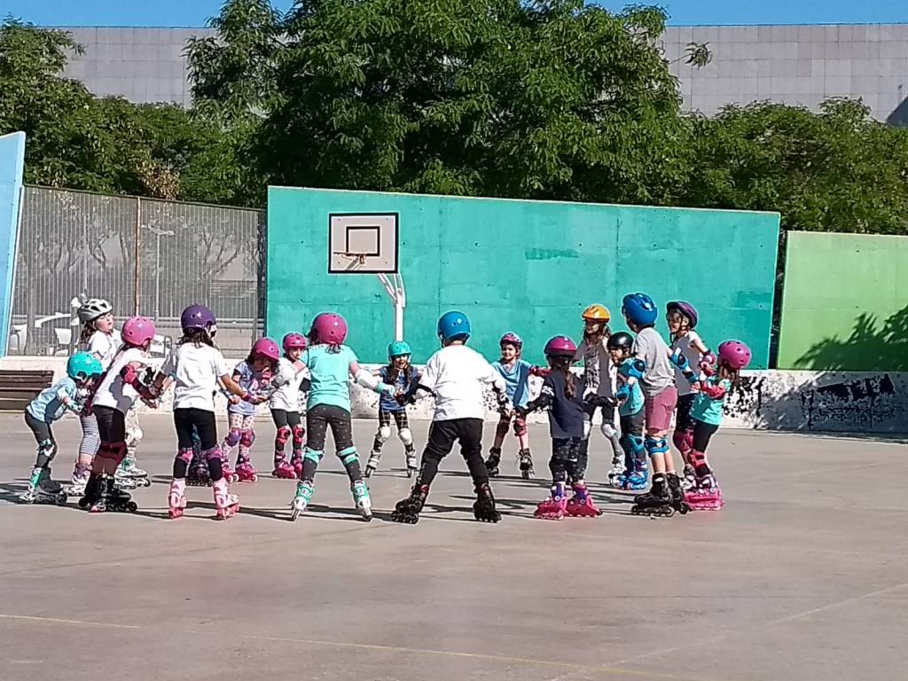 Activitat per aprendre a patinar sobre rodes, ja sigui en línia o tradicionals de 4 rodes. S’aprèn a través de jocs individuals i en equip.